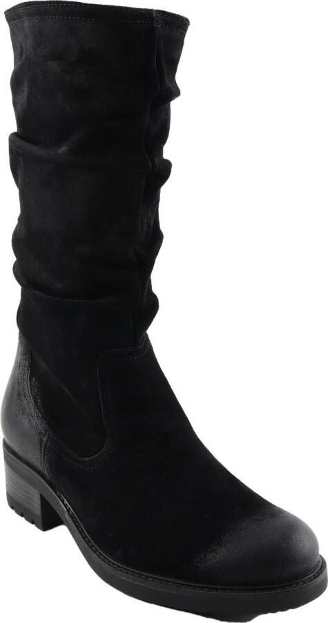Durea 9728 905H lange laars voor dames in H-wijdte (breed). Lange dameslaars uitgevoerd in suede en is op sommige delen licht opgeschuurd. Dit geeft de laars een stoere gedragen look. De schacht heeft een lichte afzak uitstraling en de laars sluit middels een rits. De hak heeft een hoogte van 4 cm.