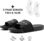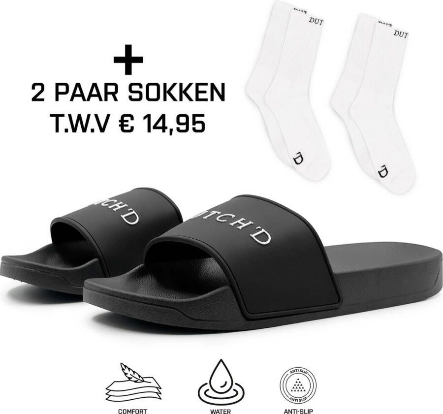 DUTCH'D Rubberen slipper + GRATIS 2 paar Sport Sokken t.w.v € 13 95 Sloffen Logo slides zwart anti slip badslippers Comfortabel Dubbele maten Nederlands merk unisex Slipper