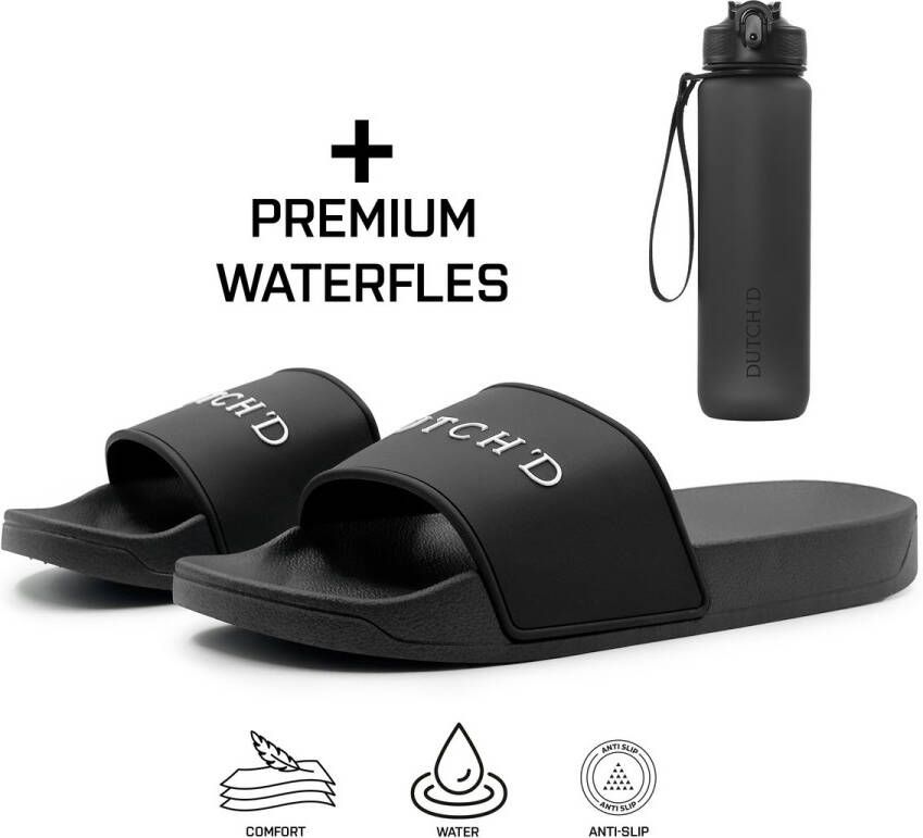 DUTCH'D Badslippers + Waterfles Cadeau! Badslippers Badslippers Slippers en Dubbele maten Unisex Slippers Badslipper Antraciet Anti Slip- Sauna slippers