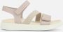 Roze/beige ECCO Flowt dames sandalen. Gemaakt van zacht leer met een zool van rubber. Voorzien van een klittenbandsluiting bij de tenen en de hiel voor een fijne pasvorm. Deze mooie sandalen hebben een witte zool van circa 3 cm