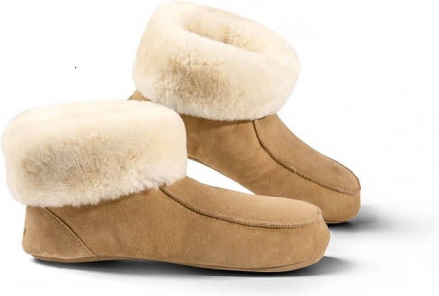 Fellhof Hütten gevoerde pantoffels en lichtbruin merinowol veloursleer warme pantoffels wollen pantoffels sloffen verstevigde zool