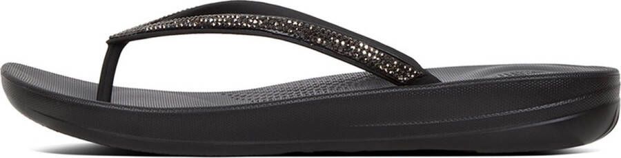 Deze teenslipper voor dames van FitFlop TM heeft een normale pasvorm en heeft een bovenwerk van rubber. Het model is voorzien van een teenstukje en banden over de voet. De teenslipper heeft een voering van rubber.details van deze teenslipper:stijlnaam: Iqushion sparkleglitters