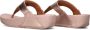 Roze teenslipper voor dames van het merk FitFlop. Deze teenslipper is uitgevoerd met een brede, lederen band in metallic. Deze band loopt door tot onderaan de loopzool. De binnenvoering is van leer, het voetbed is van rubber. Verder heeft de rubberen loopzool een fijn profiel en bedraagt de hakhoogte circa 4, 5 cm.