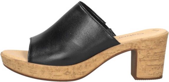 Verhoog je stijl met deze trendy zwarte/kurk muilen voor dames van Gabor. Gemaakt van synthetisch materiaal en leer, hebben deze schoenen een hakhoogte van 7 cm en een comfortabele F1/2 leest.