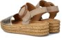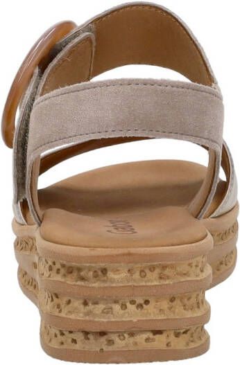 Gabor comfortabele en trendy dames sandaal. Deze sandaal van Gabor heeft als art. nr. 64.550.62. De kleur is taupe in een mooie materialen mix van nubuck leer met metallic leer. De bovenste band heeft een siergesp detail en is verstelbaar middels een klittenbandsluiting, zodat je de schoenen perfect passend kunt maken. Daarnaast heeft de sandaal een kleine sleehak van 2cm hoogte. De voering is van microfaser