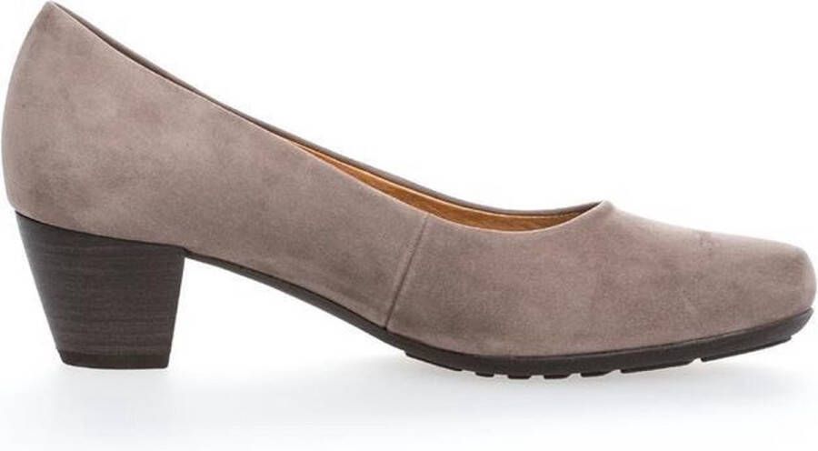Design: Profielzolen; Type hak: Trechterhak; Materiaal: Leer; Motief: Effen; Materiaal: Sude; Schoenneus: Ronde neus; Extra's: Velours look; Hakhoogte: Middelhoge hak (3-7 cm)