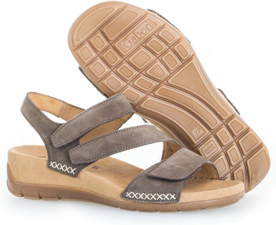 Deze taupekleurige sandaal 734.1 van het merk Gabor is een stijlvolle en comfortabele keuze voor de zomermaanden. Het hoogwaardige, gestructureerde leer van de buitenkant geeft deze sandaal een luxe uitstraling, terwijl het sudelook textiel aan de binnenkant zorgt voor een zachte en comfortabele pasvorm. De klittenbandsluitingen op de voorvoet en wreef maken het gemakkelijk om de sandaal perfect af te stemmen op de vorm van de voet, zodat deze altijd comfortabel zit. De oplopende zool is gemaakt van rubber en heeft een gripvast profiel, waardoor deze sandaal perfect is voor lange wandelingen of een dagje shoppen. De kleur is bovendien makkelijk te combineren met verschillende outfits en maakt deze sandaal een veelzijdige aanvulling op elke zomergarderobe!