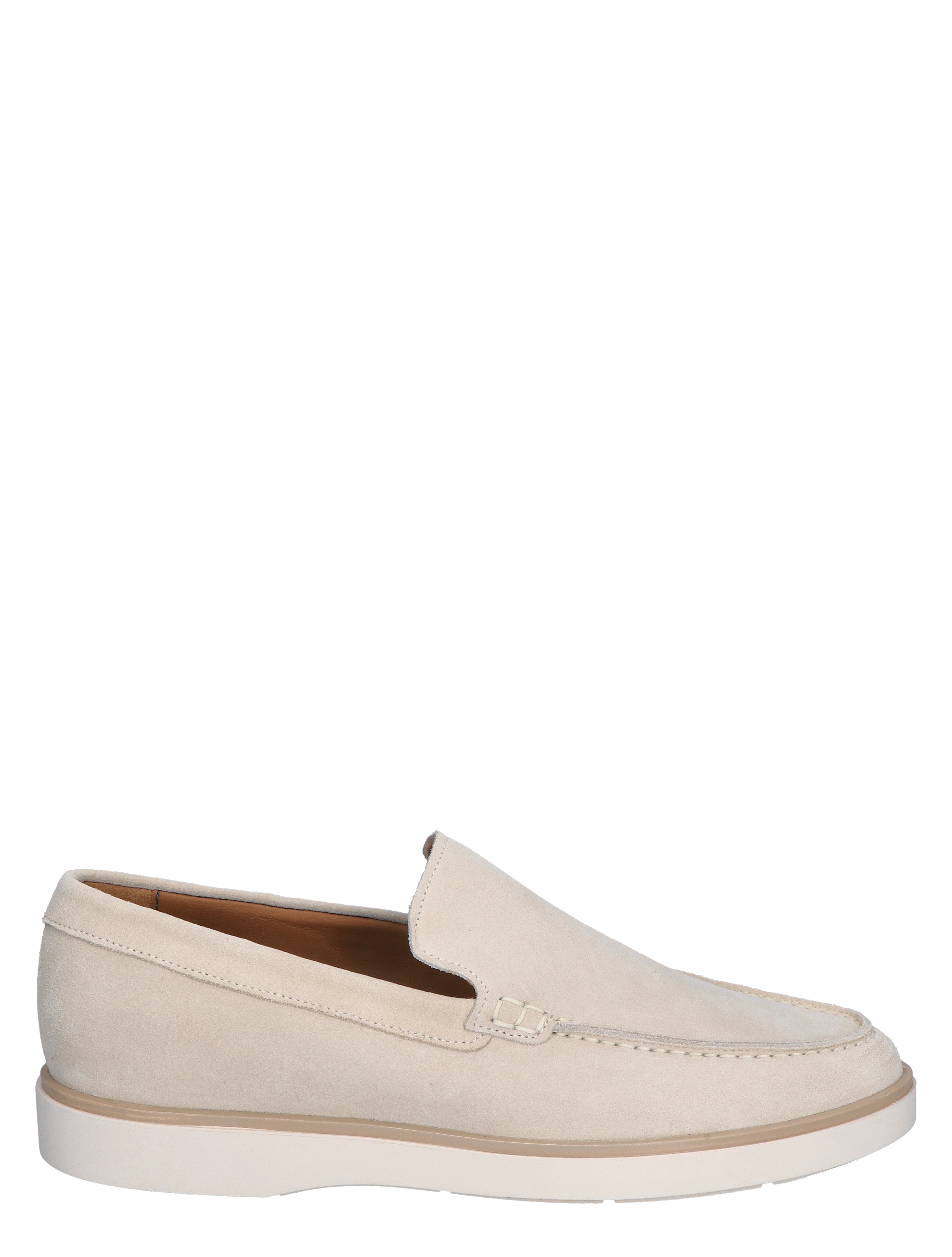 Giorgio 1958 56402 loafer voor heren in de kleur off white. Deze stijlvolle loafer combineert een klassieke look met een sportief gevoel. Het elegante model heeft een buitenwerk van hoogwaardig suede en omhult de voet op natuurlijke manier. De neus heeft een klassieke spiegelnaad, terwijl de zool daarentegen van casual en sportief wit rubber is gemaakt. De voering en het uitneembare voetbed zijn van leer.