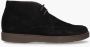 Veterboots voor heren 28792 uit de collectie van het Italiaanse merk Giorgio1958. Deze handgemaakte schoenen hebben een bovenzijde van zwart suède. De binnenkant is in soepel leer uitgevoerd en voorzien van een uitneembaar voetbed. De donkerbruine lichtgewicht zool, zwarte veters en de gestikte mocassinafwerking maken dit model af. Bovendien