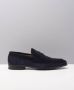 Deze volledig handgemaakte herenschoen heeft een bovenwerk van sude in een donkerblauwe tint