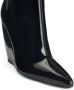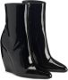 zwart leer lakleren afwerking puntige neus ritssluiting aan de zijkant hoge blokhak