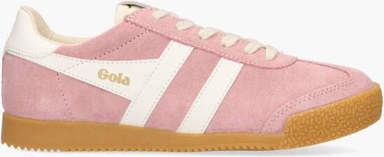 Deze Elan CLB538KW1 damessneakers komen uit de collectie van het merk Gola. Het bovenwerk is gemaakt van roze sude, gecombineerd met een witte hielcap van kunstleer en bijpassende stripes van imitatieleer. De binnenkant is gevoerd met textiel en heeft een uitneembaar voetbed voor extra draagcomfort. Een gouden merklogo prijkt op de met