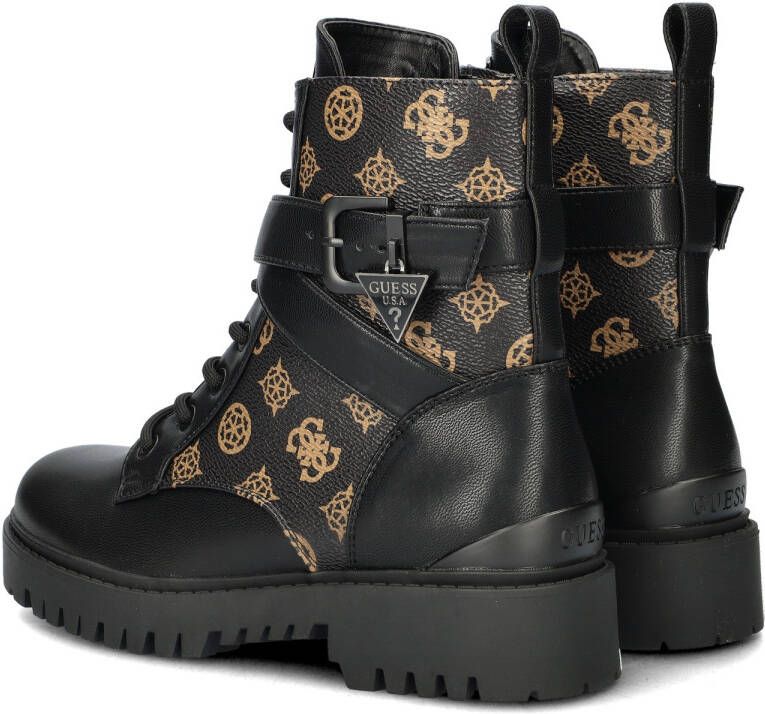 Guess Olsy dames veterboot Maak jouw Guess-collectie compleet met deze leuke veterboots van dit trendy merk. Uitgevoerd in PU-imitatieleer met het kenmerkende 4G-logo van Guess op de schacht en stoere riemen voor een bikerboot vibe. Gevoerd met imitatieleer. Voorzien van een imitatieleren voetbed met dempend kussen over de lengte van de voet voor een comfortabele draagervaring. Afgewerkt met een chunky profielzool van thermoplastisch rubber voor betere grip.