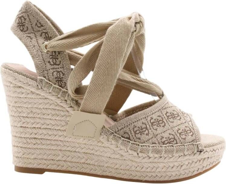 Verhoog je stijl met deze beige casual sleehakken voor dames van Guess. Gemaakt van textielmateriaal met een 10 cm jute zool, zijn deze sandalen perfect voor elke gelegenheid.