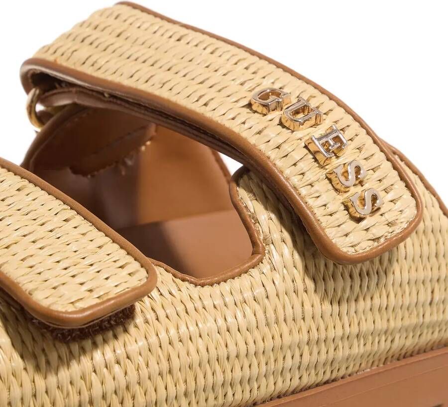 Shop Beige Rafia Muiltjes met Gouden Logo van Guess in Brown bij Miinto. Wanneer u niet tevreden bent, kunt u uw items gratis retourneren binnen 14 dagen