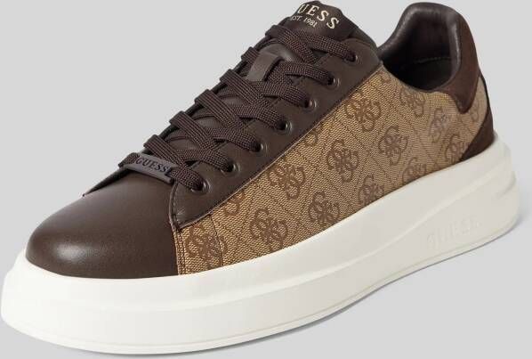 Herensneakers van GUESS;Afgeronde punt;All-over motief;Model 'ELBA';Vetersluiting;Labeldetail;Met contrastversiering;Hakhoogte bij maat 44: 5 cm;Schachthoogte bij maat 44: 8 cm;Schachtbreedte