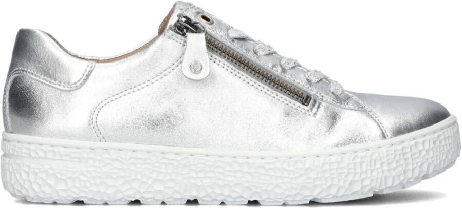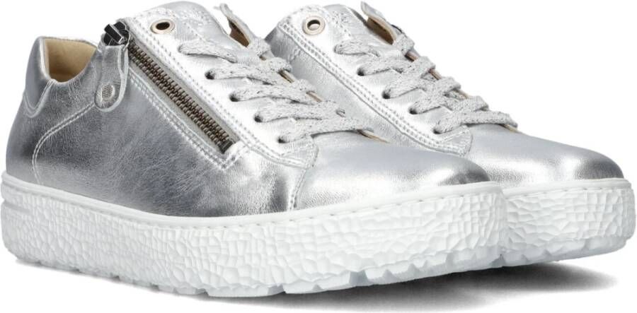 1402. Deze trendy schoenen zijn perfect voor dames die op zoek zijn naar comfort en mode in n. Gemaakt van zilverkleurig leer met zilverkleurige veters en een extra rits aan de zijkant voor gemakkelijke instap. De binnenkant is gevoerd met leer en de witte rubberen zool heeft een gekarteld profiel