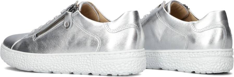 Stap in stijl met deze zilverkleurige sneakers van HARTJES, model 162.1402. Deze trendy schoenen zijn perfect voor dames die op zoek zijn naar comfort en fashion in n. De sneakers zijn gemaakt van zilverkleurig leer en hebben zilverkleurige veters en aan de zijkant een extra rits, voor een gemakkelijke instap. De binnenkant is van leer en de witte rubberen zool met gekarteld profiel. Draag ze tijdens een dagje shoppen in de stad of naar een gezellige lunch met vriendinnen. Combineer de sneakers met een stoere jeans en een basic t-shirt voor een casual look, of met een trendy jurkje voor een meer geklede outfit. Met deze sneakers maak je elke outfit helemaal af!