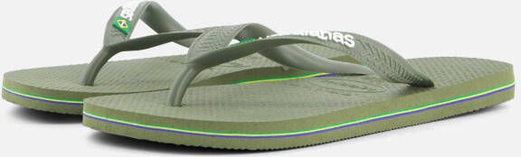 Uit de collectie Herenschoenen VZ22 van het merk Havaianas, artikel Havaianas Brasil Logo green olive in Groen Rubber. Deze mooie Slippers kunt u makkelijk overal bij dragen. Deze Slippers hebben een hakhoogte van 2.