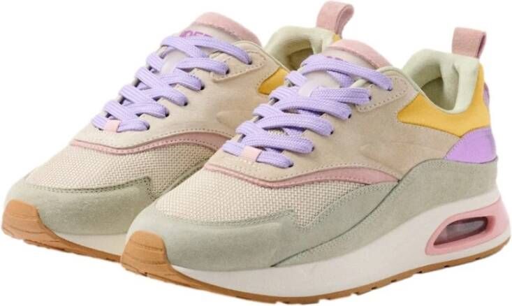 Stap in stijl met de PARTHENON lage sneakers van THE HOFF BRAND. Deze multi-kleurige sneakers zijn gemaakt van sude en hebben diverse panelen, perfect bij een casual outfit. Extra tof zijn de paarse veters, die je kunt afwisselen voor de witte veters. Het hielstuk is voorzien van roze metallic en de zool is afgewerkt met een transparant luchtkussen. Het uitneembare voetbed zorgt voor extra comfort, terwijl de rubberen zool zorgt voor grip en stabiliteit. Combineer deze sneakers met een jeans en een oversized trui voor een trendy en comfortabele outfit. Of draag ze onder een zomerjurkje voor een speelse en sportieve touch.