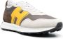 Bruin, veelkleurig, kalfsleer, design met vlakken, logopatch aan de zijkant, amandelvormige neus, veters aan voorkant en geribbelde rubberen zool.