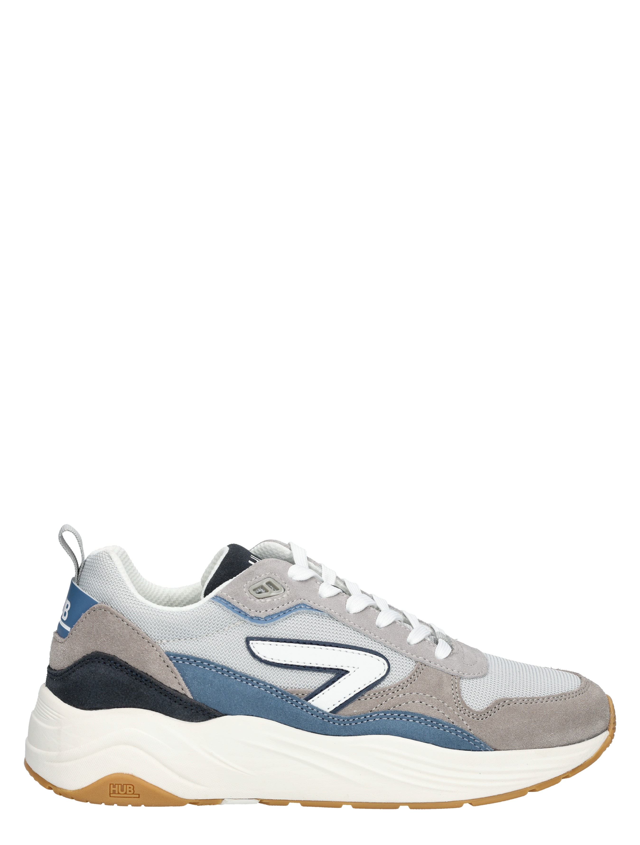 Hub Glide heren sneaker Een casual sneaker is een echte musthave in je garderobe. Dit chunky model van Hub is helemaal on trend. Uitgevoerd in een combinatie van sude en mesh-textiel wat de sneaker een sportieve uitstraling geeft. Gevoerd met mesh textiel en voorzien van een gewatteerde hielkap. Mesh-textiel voert warmte en vocht snel af zodat de schoenen langer fris blijven. Bevat een textiel voetbed met luchtkanalen en perforatie om de voeten koel en op aangename temperatuur te houden. Daarnaast is het voetbed uitneembaar zodat eigen steunzolen gebruikt kunnen worden. Afgewerkt met een chunky loopzool met schokabsorberende tussenzool. De zool heeft uitstekende grip bij iedere stap. Dit model valt breed uit
