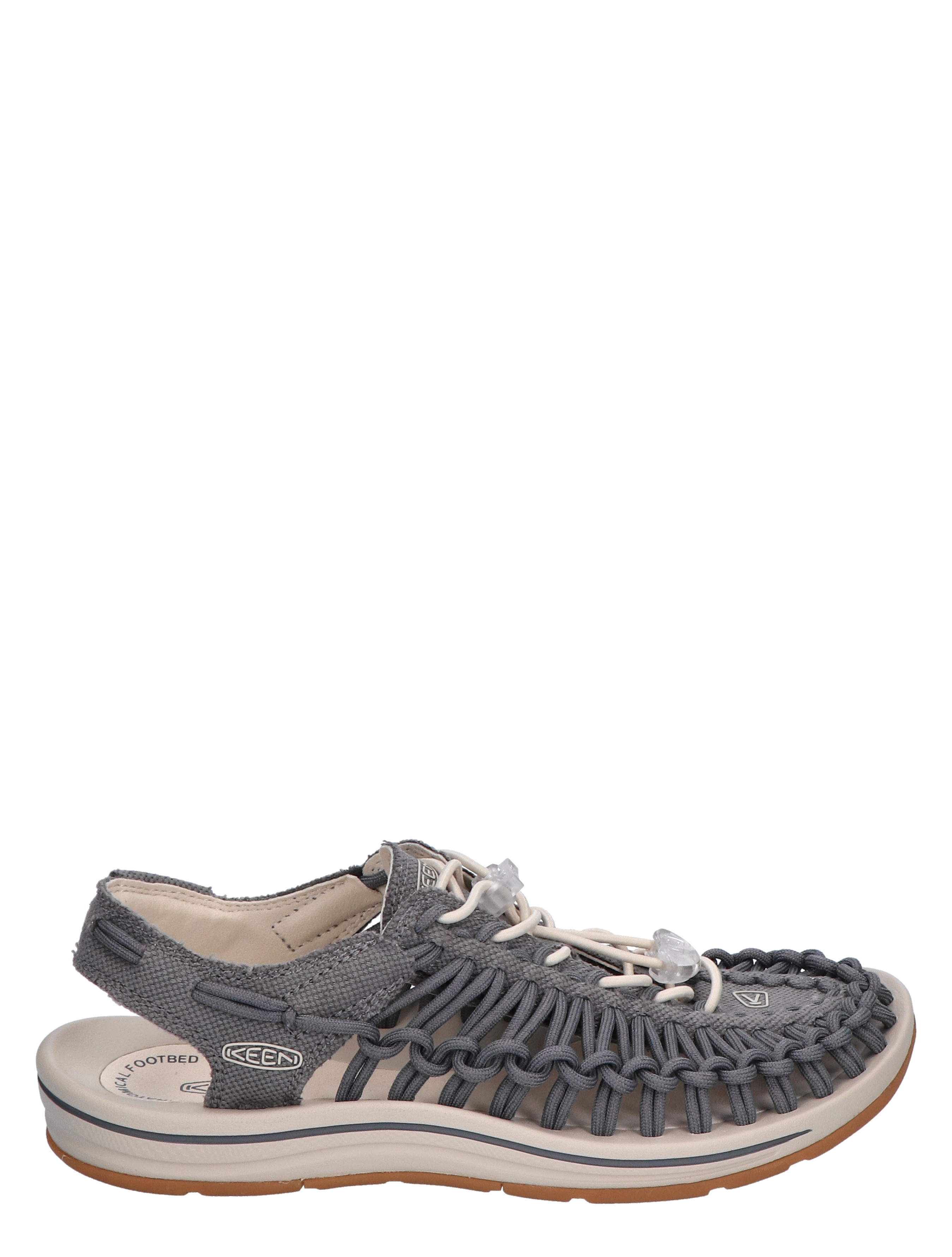 De Uneek Canvas Sandaal van Keen neem je mee op al je avonturen in de buitenlucht. Vormt zich naar jouw voet door de unieke constructie met door elkaar lussende koorden. Bovenwerk van lichtgewicht canvas. Bungeekoord en vetersluiting van gerecycled PET-plastic. Zachte voering van microvezel. PU-binnenzool met ondersteuning van de voetboog voor langdurig comfort. PU-tussenzool zorgt voor veerkrachtige demping. Buitenzool met voert water af voor uitzonderlijke grip. Niet-markerende rubberen buitenzool laat geen sporen na. Eco Anti-Odor voor natuurlijke geurbestrijding. Gerecycled PET-plastic. Originele pasvorm – Iconische Keen-pasvorm met royale ruimte over de voorvoet voor tenen om verspreiden.