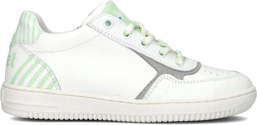 Een witte sneaker mag ook dit seizoen weer niet ontbreken in je garderobe. Dit lage sneaker model 23M003 komt uit de collectie van het merk Koel4kids en is gemaakt van wit, gestructureerd leer met een frisse touch dankzij de groene panelen op de tong en hielstuk. Andere opvallende details zijn de perforaties op de neus, de groen met witte veters, het grijze suède bij de voorvoet en de merkemblemen op de tong en hiel. Het binnenwerk is leatherlook gevoerd met een uitneembaar, leren voetbed. Extra handig is de ritssluiting naast de vetersluiting, hierdoor trek je 'm gemakkelijk aan en uit en hoef je niet iedere keer de veters te strikken. De rubberen zool is voorzien van reliëf vormen en heeft een gripvast profiel.