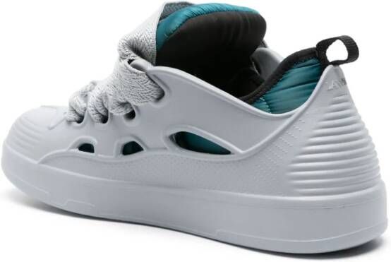 Blauwgrijs, uitgesneden detail , logo-relif aan de zijkant, logo-relif aan de zijkant, tong met logoprint, verwisselbare veters, logo op het hielstuk, ronde neus, geperforeerde neus, vetersluiting aan de voorkant, dubbele ritssluiting bij de hiel, uitneembare binnenzool, binnenzool met merk en rubberen buitenzool.