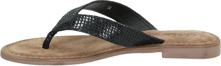Lazamani 75.481 Zwart Modieuze teenslipper van Lazamani. De buitenzijde is kunststof. De binnenzijde en het voetbed is leer.
