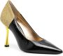 zwart/goudkleurig kalfsleer tweekleurig design glitterdetail puntige neus leren binnenzool met logo 65mm hak