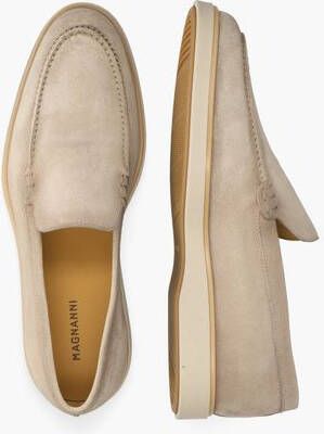 Magnanni 25117 herenloafers in lichtgrijs sude met een tijdloze uitstraling. De mocassinstiksels benadrukken de klassieke loaferstijl. De gebroken witte rubberen zool met een lichtbruine bewerking en een gummy onderzool geven de instappers een sportieve touch en zorgen voor comfort. Binnenin biedt de leren voering met vast voetbed een