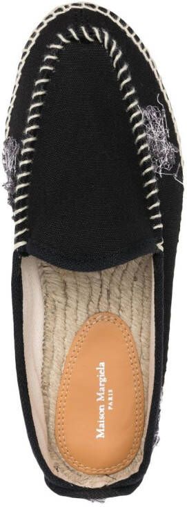 zwart katoen geborduurd design decoratieve stiksels ronde neus juten zool