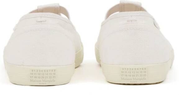 wit/licht beige katoen canvas vlakken geribbelde details uitgesneden detail gespleten neus slip-on stijl elastische band rubberen neus binnenzool met logo platte rubberen zool