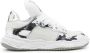 wit/zilverkleurig kalfsleer vlakken geperforeerde neus ronde neus veters aan voorkant logopatch op de tong logo op de hiel binnenzool met logo rubberen zool