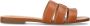 Cognac leren slippers van Manfield met platte hak van 1 cm en brede band over de voorvoet. We adviseren als verzorging en bescherming de Collonil Carbon Pro