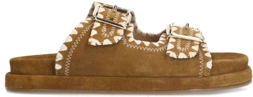 Deze slipper voor dames van Manfield heeft een bovenwerk van leer. Het model is voorzien van een wreefband en een comfortabele hak. De slipper heeft een voering van leer