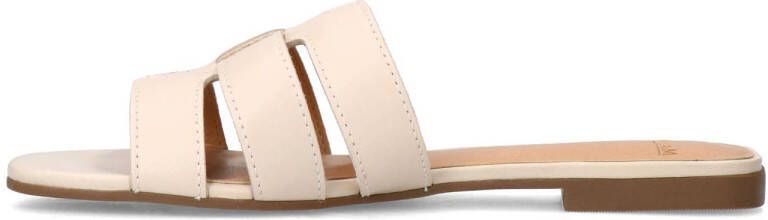 Witte leren slippers van Manfield met platte hak van 1 cm en brede band over de voorvoet. We adviseren als verzorging en bescherming de Collonil Carbon Pro