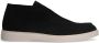 Zwarte sude boots van Manfield met witte zool van 2 cm en uitneembare binnenzool. We adviseren als verzorging en bescherming de sude/nubuck spray in transparant
