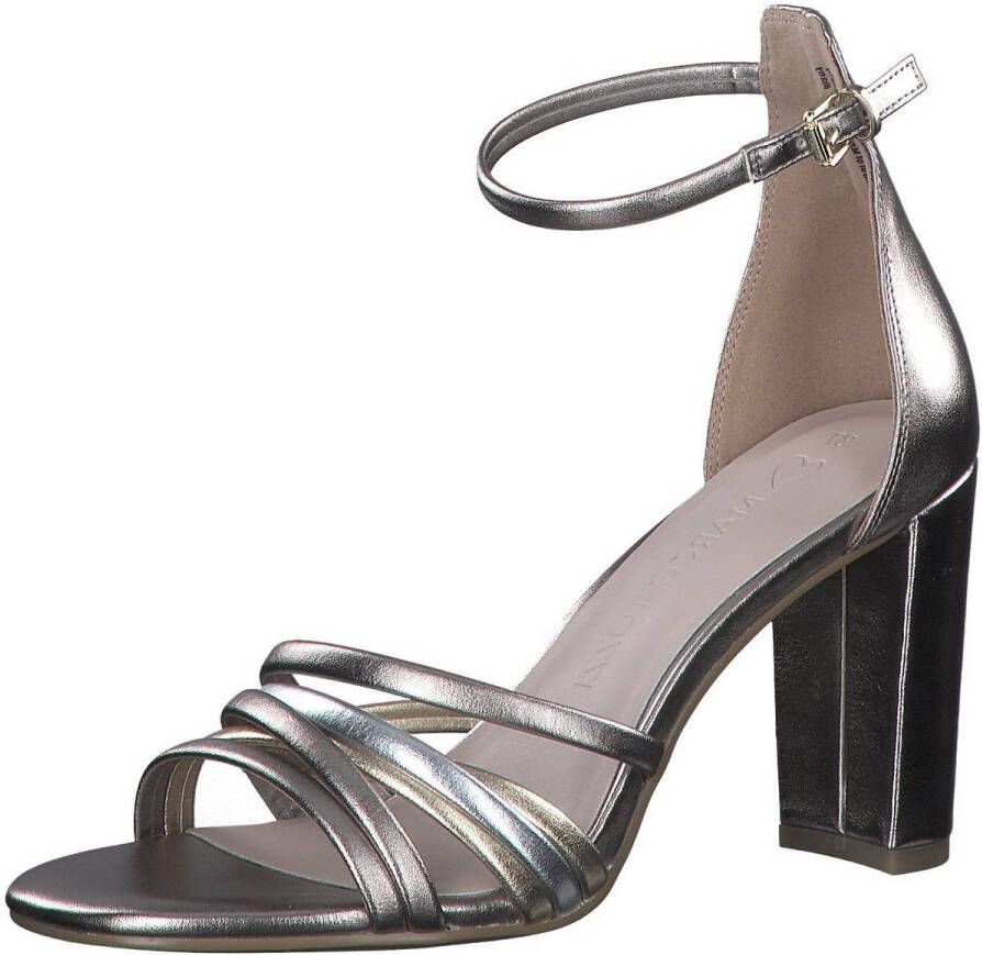Stap de zomer in met deze stijlvolle Marco Tozzi hoge hak sandalen voor vrouwen. Gemaakt van synthetische materialen, hebben deze gouden sandalen een stevige hak voor extra ondersteuning en een hakhoogte van 9 cm. De enkelband kan worden vastgemaakt met een gesp, waardoor ze de perfecte toevoeging zijn aan elke zomeroutfit