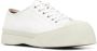 wit leer wit kalfsleer logolabel veters aan voorkant metalen ringlets ronde neus rubberen neus leren binnenzool met logo plateauzool