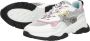 Van het Nederlandse merk Maruti is deze toffe sneaker Toni. Maruti staat voor schoenen met een clean design en een bijzondere kwaliteit. Ieder paar Maruti's is uniek door de natuurlijke materialen en experimentele wassingen! Deze lage sneaker is gemaakt van wit leer en mesh textiel op de tong, neus en zijkanten. Opvallend zijn de panelen van paars suède, goudkleurig leer en beige ponyhair. Dit sportieve model heeft gekleurde veters en een handig zwart aantreklusje op de hiel. Het zwarte merkembleem is te vinden op de tong en hiel. De voering is gemaakt van textiel en het dempende voetbed is uitneembaar. De chunky zool van rubber heeft een grof profiel en de zwarte loopzool maakt deze sneaker net wat stoerder!