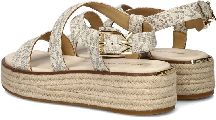 Michael Kords Lynn dames espadrille Breid je schoenencollectie uit met deze Michael Kors sandalen. Uitgevoerd in imitatieleer met het bekende MK-logo op de print. Met de gesp kan de hielband vertseld worden. De banden zijn aan de binnenkant afgewerkt met leer wat een fijn draaggevoel biedt. Voorzien van een leren voetbed met dempend foam. Bevat een rubberen loopzool. De tussenzool is bewerkt met touw wat de sandaal een zomerse look geeft.