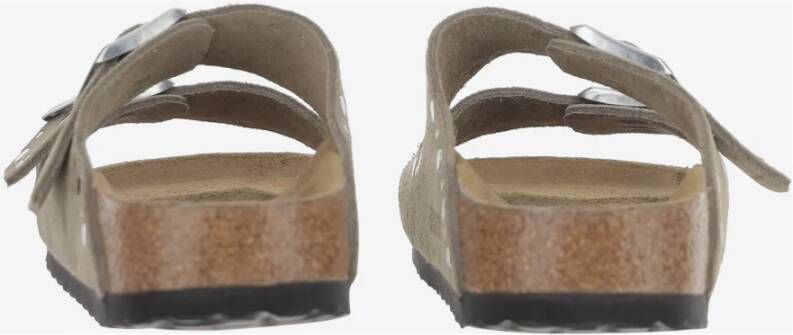 Upgrade je zomerse stijl met deze Birkenstock sliders. Gemaakt van sude leer met verstelbare bandjes en studs overal, deze taupe sandalen hebben een kurken zool voor de hele dag comfort. Gemaakt in Duitsland met 100% lederen samenstelling. Maat 37 IT