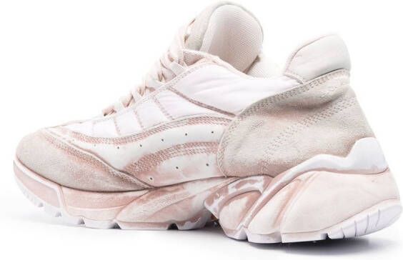 Lichtroze, kalfssude, katoen, leren afwerking, design met vlakken, ronde neus, veters aan voorkant en geribbelde rubberen zool.