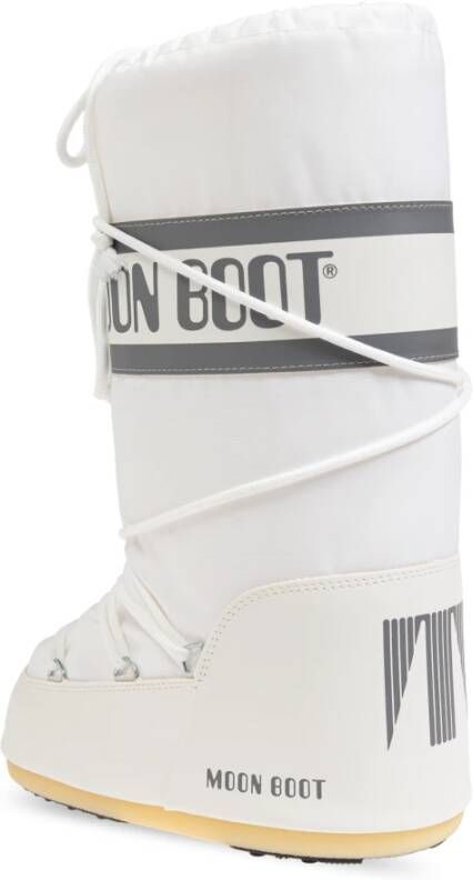 Blijf stijlvol en warm deze winter met deze Moon Boot Icon-laarzen in wit nylon en synthetisch leer. Perfect voor de modebewuste vrouw