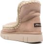 Poederroze, schapenleder, discrete stiksels, afgewerkte zoom, ronde neus, slip-on stijl, enkellengte en platte rubberen zool.