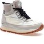 Met sneakers van het merk Napapijri kun je jouw onverwachte reis vervolgen naar de natuur en naar creativiteit! Dit sterke merk ontwikkelt hoogwaardige vrijetijdskleding door innovatieve materialen en aandacht voor stijl te combineren, geïnspireerd op extreme landschappen van de polen en met accenten van het Hippe stadsleven. En laat dat nou net aansluiten op de laatste fAshion trend van dit seizoen, namelijk; gorpcore. Deze nieuwe trend richt zich voornamelijk op kleding en schoenen die je uitnodigen om de natuur in te gaan, maar dan met een fAshion twist. En dit model hoort erbij! Deze witte hoge sneaker Snowrun is gemaakt van sterk nylon textiel met panelen van beige suède en heeft een grijs merklabel op de tong en een stoere merkopdruk op de zijkant. Andere opvallende details zijn de zilverkleurige veterhaken, de leren stootrand rondom de schoen met een fijn ruitjes reliëf en een textiel aantreklusje achterop de schoen waarmee je ze gemakkelijk aan-en uit trekt. Deze hoge sneaker is winterproof en heeft een heerlijke gevoerde enkelkraag- en tong die samen met het textiele binnenwerk en het dempende én uitneembare voetbed veel steun bieden aan jouw voeten. De zoolrand is creatief afgewerkt met gele accentstreep en de beige loopzool is voorzien van gripvaste profiel met diepe groepen die niet alleen zorgt voor een goede grip maar ook voor een goede afwikkeling van de voet. Deze lichtgewicht schoen is ultieme vertolking van ‘athleisure' en perfect voor het komende winterseizoen!