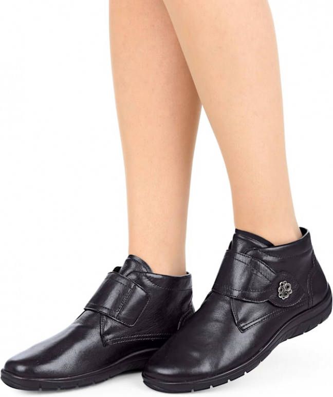 Dit enkellaarsje van naturläufer van hoogwaardig glad leer is een echte musthave voor bijzondere gelegenheden zoals een feestje. Het geeft elke outfit een klassieke touch. Geschikt voor losse inlegzolen, verwisselbaar voetbed. Platte hak van 3, 5 cm. Het enkellaarsje komt tot de enkel een schachthoogte van 8, 5 cm. Profielzool. Gewrichtssteun. De schoen heeft een klittenbandsluiting. De schoenmaat wordt aangegeven in Engelse maten.