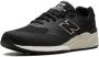 zwart kalfsleer mesh vlakken logopatch aan de zijkant veters aan voorkant ronde neus binnenzool met logo chunky rubberen zool logo op het hielstuk